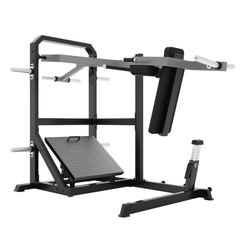Тренажер обеспечивает глубокую и контролируемую траекторию приседа, позволяя эффективно прорабатывать квадрицепсы, ягодичные мышцы и заднюю поверхность бедра. Регулируемая по углу платформа помогает подобрать оптимальное положение стоп, а высокая спинка и подушки под плечи надёжно фиксируют корпус на протяжении движения. Стартовый фиксатор и демпферы делают тренировку безопасной, плавной и комфортной как для опытных спортсменов, так и для пользователей с разным уровнем подготовки.