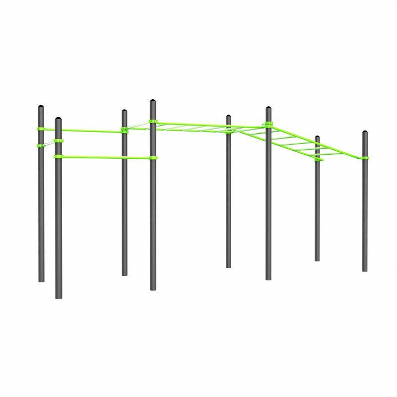 Комплекс состоит из восьми опорных столбов диам 108 мм и высотой: